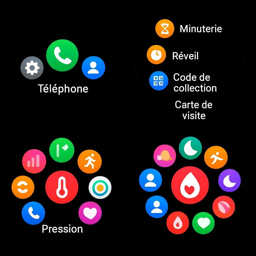 Bluetooth Call/BT Music, Weather, Heart Rate Detection/Blood Pressure Detection/Blood Oxygen Detection/All-day Heart Rate Monitor, Timer, Pedometer, Calorie Consumption, Distance Calculation, Heart Rate, Blood Pressure, Blood Oxygen, Sleep Time/Quality, Power On/Off Display, Multiple Sports Modes, Sleep Detection (Sleep Time, Sleep Quality), Calls to Remind, SMS Reminder, Third-Party Messaging Reminder Multi-Language Push, Clock Alarm, Remote Camera, Sedentary Reminder.